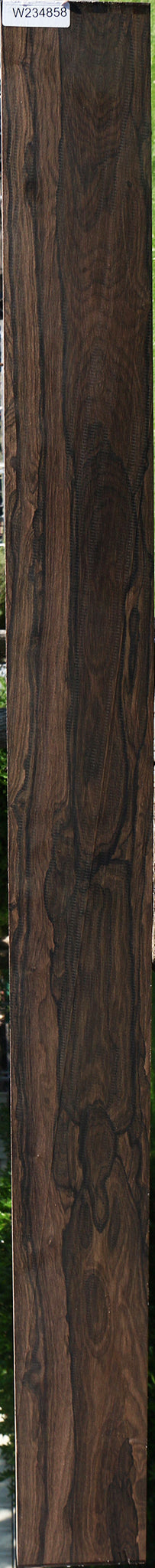 This beautiful Ziricote has been partially air dried and contains residual moisture. Lumber is surfaced on two sides and is wax sealed on the ends. Occasional faint hairline checks may be present in black streaks; these are usually on or near the sapwood. Minor end checks may be present. A 1/8″ bow or twist may be present. This wood is exceptionally high quality, A grade material. It is the same material that we use to cut instrument sets that are sold to larger instrument companies. It is getting much harder to obtain, so stock up and take advantage of the wonderful pricing! This is beautiful, high quality, hard-to-find Ziricote!